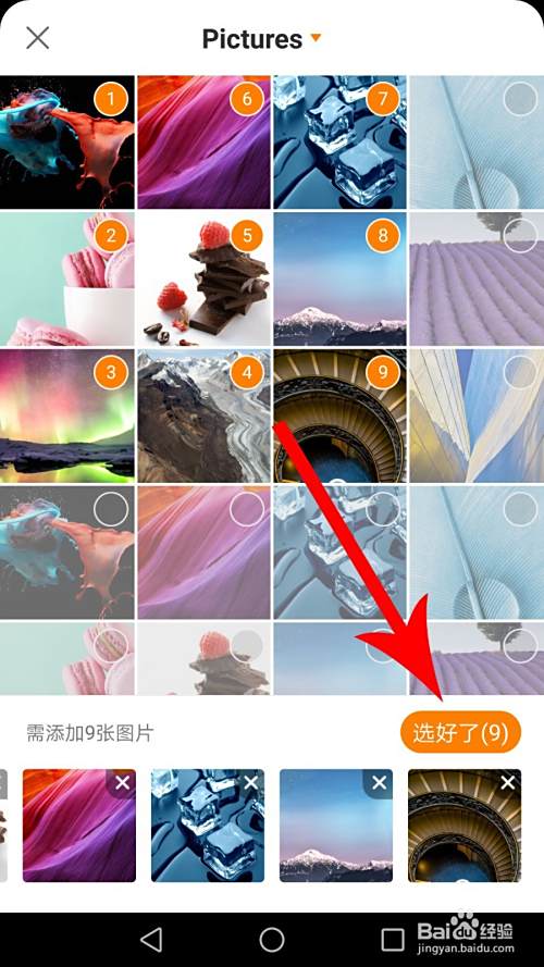 打开手机相册以后勾选照片,然后点击“选好了”,注意要勾选足够数量的照片