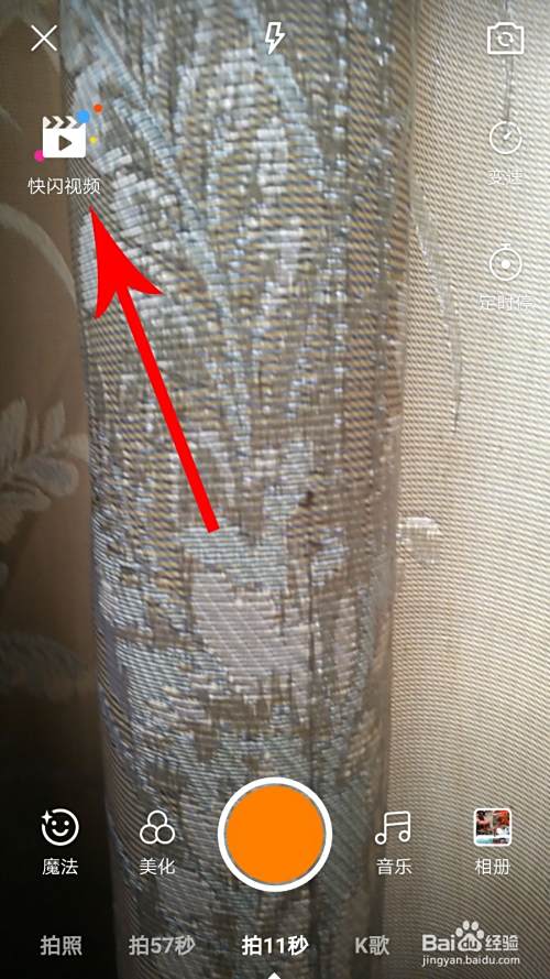 打开快手视频录制界面后点击左上角的“快闪视频”