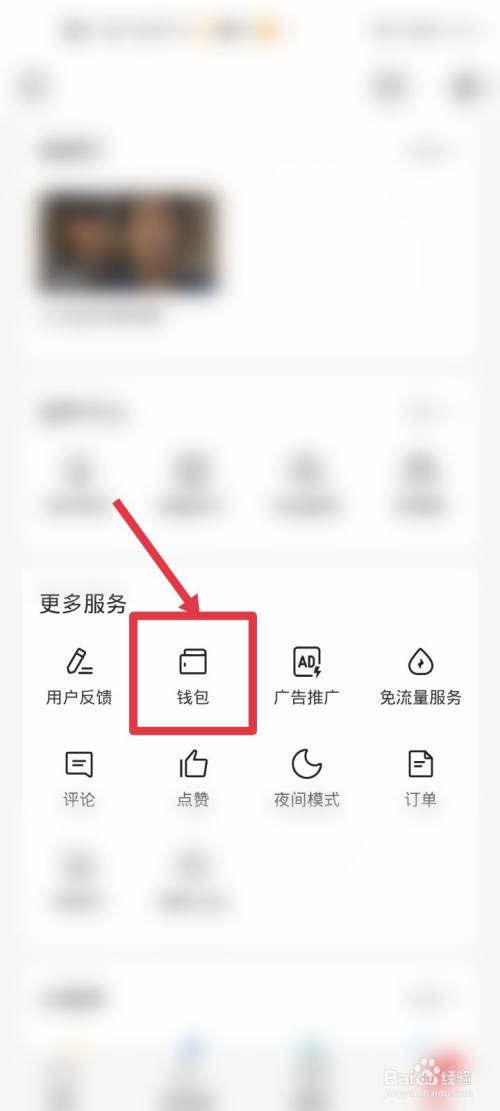 第二步,然后点击个人中心页面“更多服务”一栏的“钱包”。