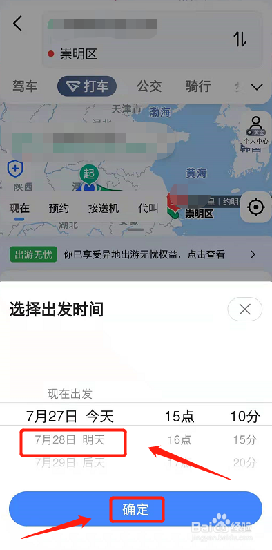 在这里,我们选择一下出发的时间,选择好之后点击一下确定