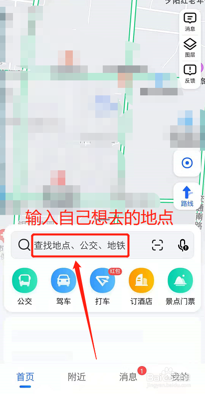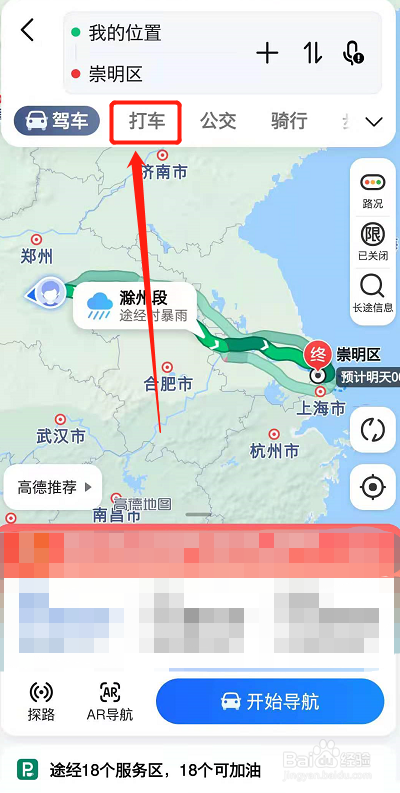 然后我们打开高德地图,在搜索框输入自己想要去的地点,输入一下:崇明