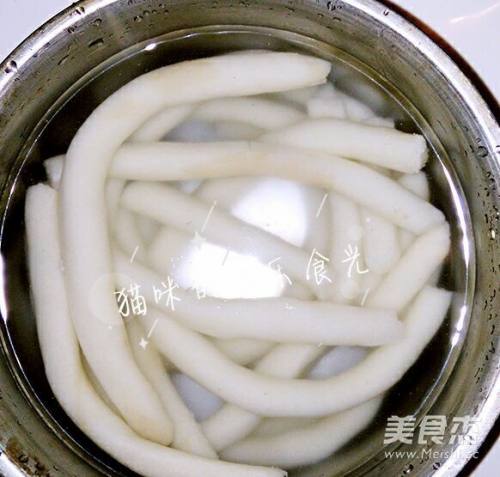 7蒸好后立刻放入冷水中,30秒后捞出沥干水份。