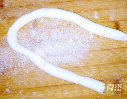5放在面板上,用手搓滚成2cm左右直径的圆棒形(不要太用力,防止龟裂)。