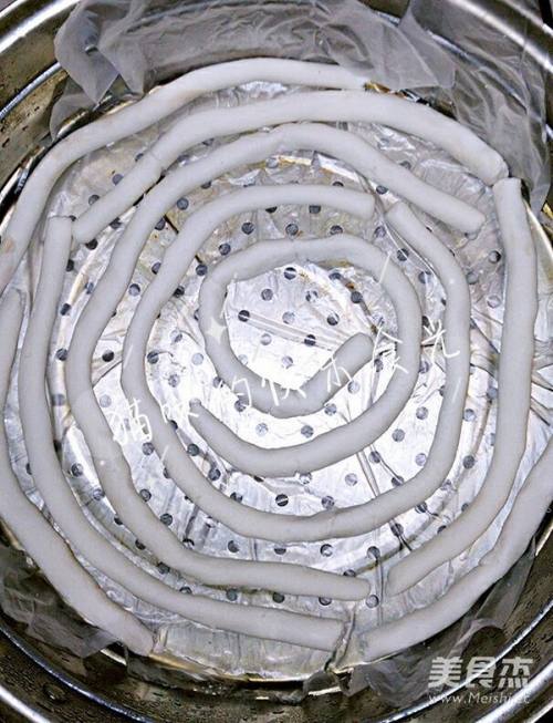 6蒸锅里铺保鲜膜(或油纸),水开后放入装有年糕的蒸笼,中火蒸10分钟左右即可。
