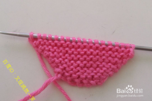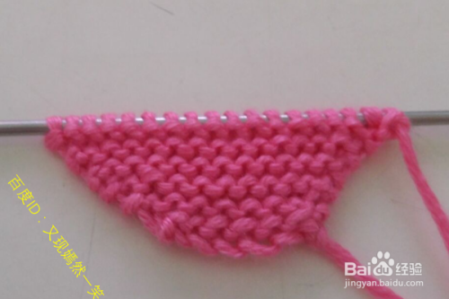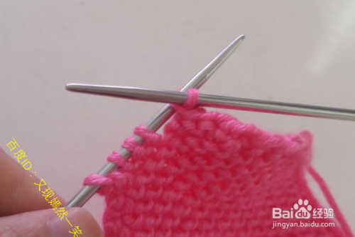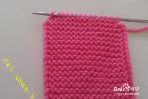 2行:翻过来,第一针还是挑开不织,还是织正针(这样就是打的搓衣板针),还是在最后一针的时候进行加1针,完成第2行。