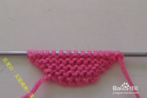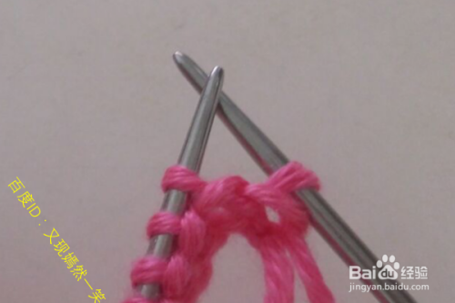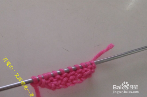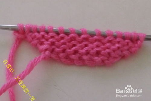 1行:第一针挑开不织,然后下一针织正针,在知道最后一针的时候进行一次加1针,完成1行。