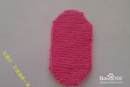 33行:这下就是鞋底的收针,收针完毕后,一个小孩毛线脸谱的鞋底就打好了,接下来的就是进行鞋面、鞋跟的挑针织了。