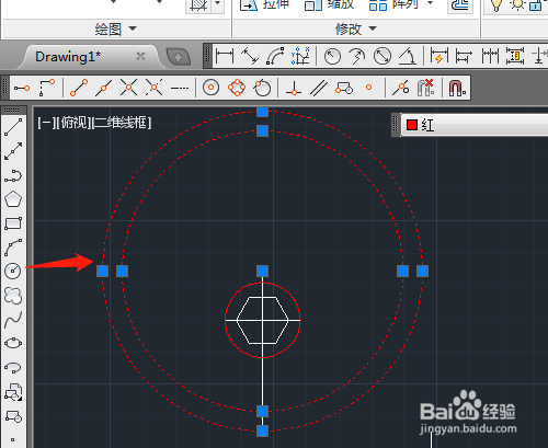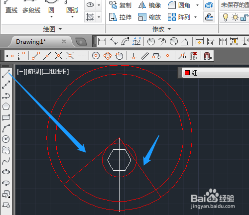 主要用到圆工具绘制,先用直线绘制辅助线,再进行其他的操作。