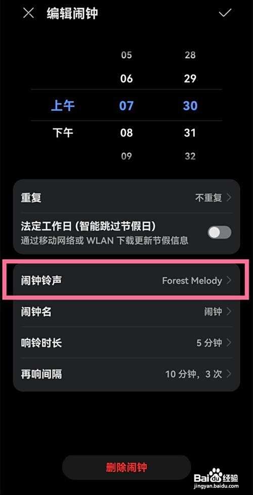 点击时钟app,打开一个设定好的闹钟进入编辑状态。