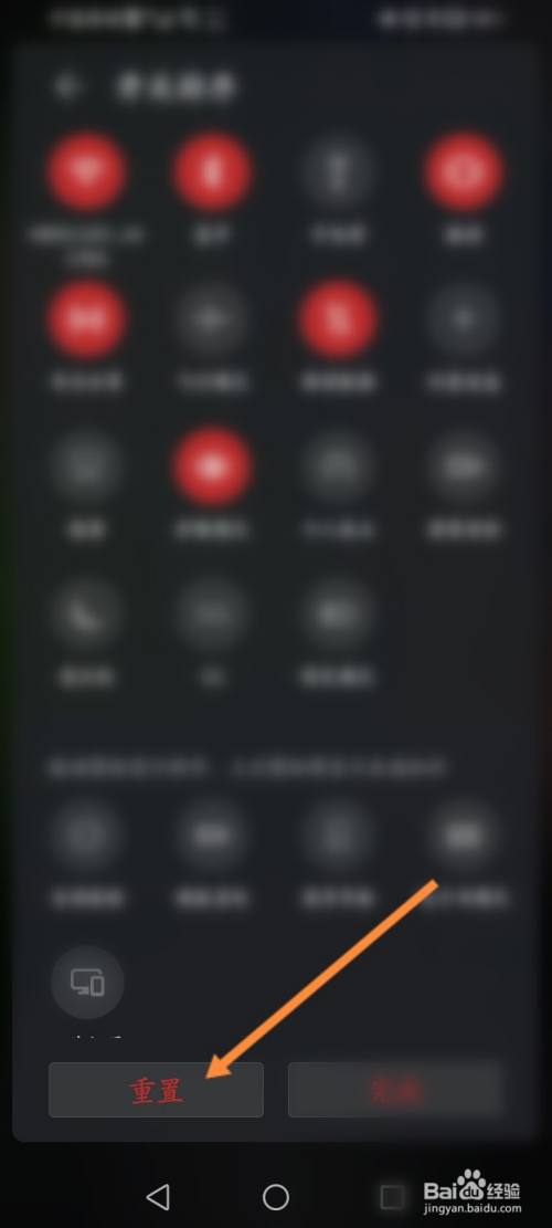 往下拉手机屏幕,点击编辑图标,点击重置,就自动排序,移动开关图标,点击完成。