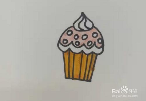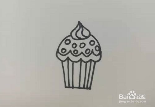 第三步,我们在刚刚画好的奶油的下面,再加上一圈波浪线,这样奶油的层次感就更加强了,而且会非常美观,具体如下图所示。