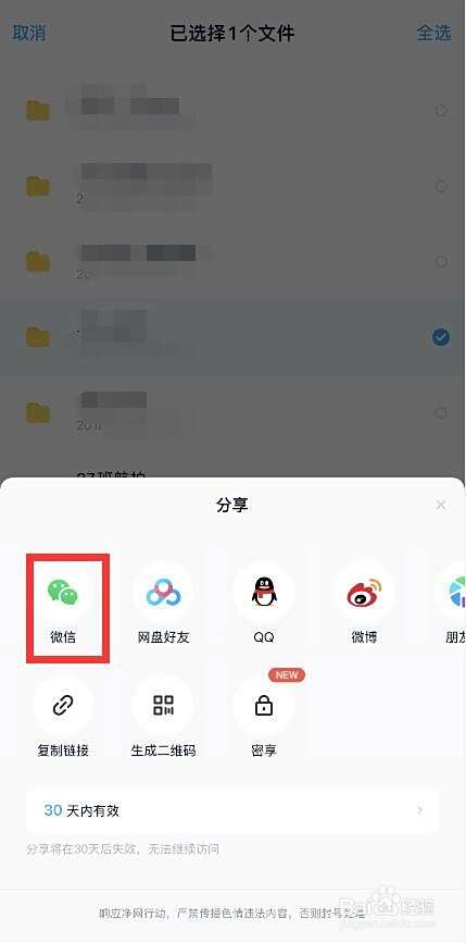 如何将百度网盘中的文件分享给微信好友,本文教大家具体操作方法。