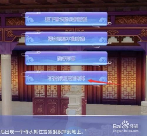 点开后,我们就开始剧情了。我为大家带来接下来通关的选项,箭头所指就是要选择的。