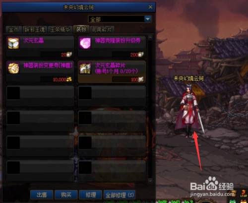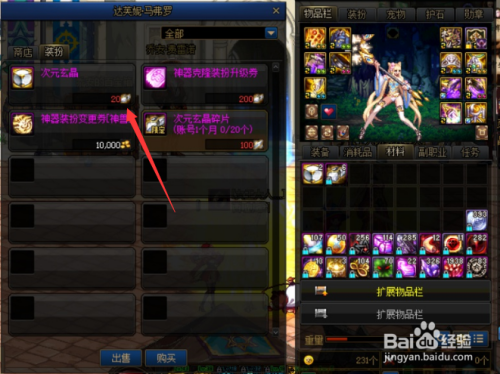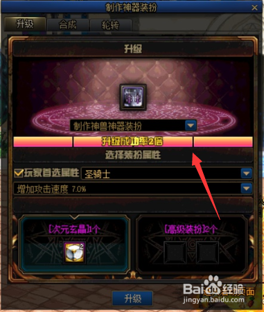 升级——消耗1个次元玄晶5%几率将稀有变成神器;