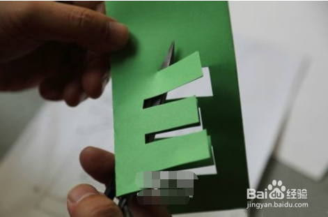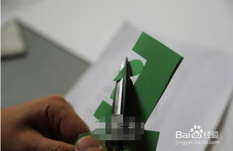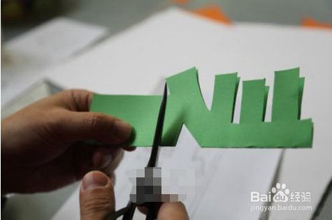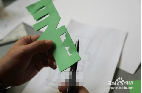 接下来就开始剪了,从春字的上方开始剪,按图画剪到头,春字半边的就样子出来了。