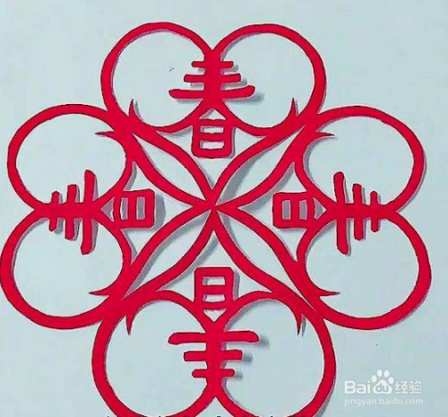 最后一步是在小花中间剪出一个圆孔。展开之后,就是一个漂亮的春字啦~你学会了吗?