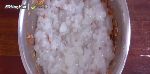11将猪肉放入空碗,加入盐、生抽、蚝油和葱花。