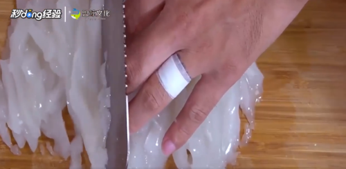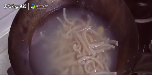 6将猪皮条放入锅中,用中小火煮30分钟再捞出。