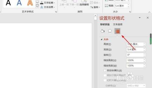 8、点击“大小与属性”图标,修改对象属性。