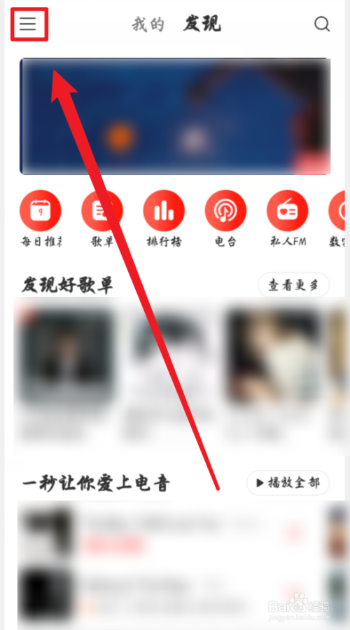 第一步,运行网易云音乐APP点击左上角打开【侧边栏】