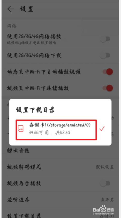 最后,在设置下载目录中进行更改即可。注意,不支持自定义目录,只支持外置或者内部储存卡的切换。