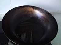 炒锅烧热放适量油,可以多放点,烧至菜籽油冒白烟,泡沫消失后熄火,稍微冷却一下