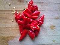将部分热油泼在辣椒面上,拌匀后再放一些就制好油泼辣子了