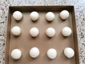 10分钟后将面团分割成15克一个的面皮。卡士750烤箱提前预热,上下火190度。