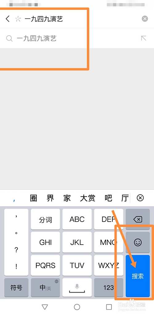 点击页面上的搜索状态栏,输入一九四九演艺,点击搜索,如下图所示:
