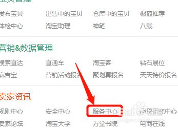 在菜单栏列表中,选择服务中心选项