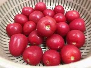 小番茄洗净,如图在去蒂端轻轻划一刀。