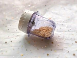 料理机换上干磨杯,放入陈皮片,加2小勺白砂糖,磨成细细的粉状,磨得越细颜值越高口感也更均匀,倒在盘中。