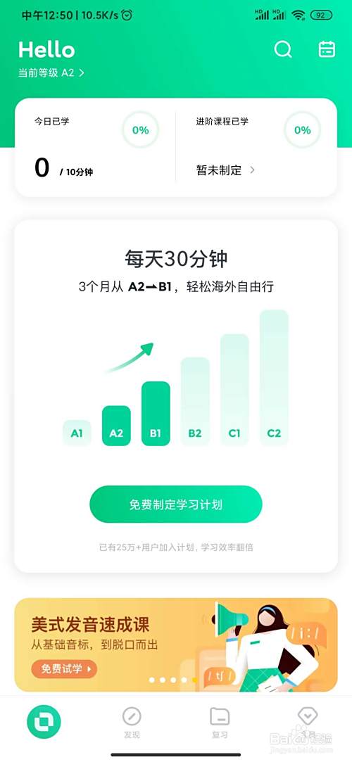 下载开言的新用户都需要完成测试,方可继续接下来的学习。开言会通过测试结果对当前学员进行等级划分,目的是为了让学员对自己的英语能力有更加清晰的认知,方便于以后更快的提升。完成之后就是这样啦~