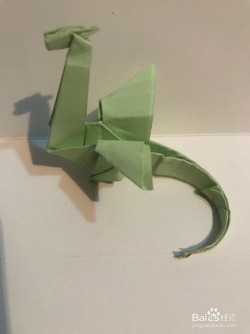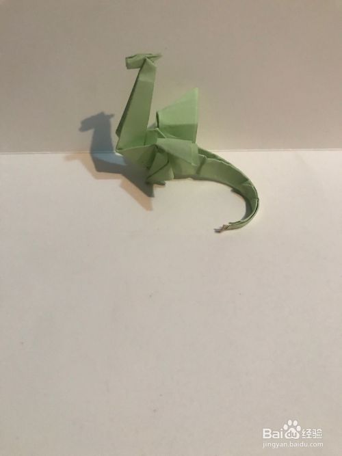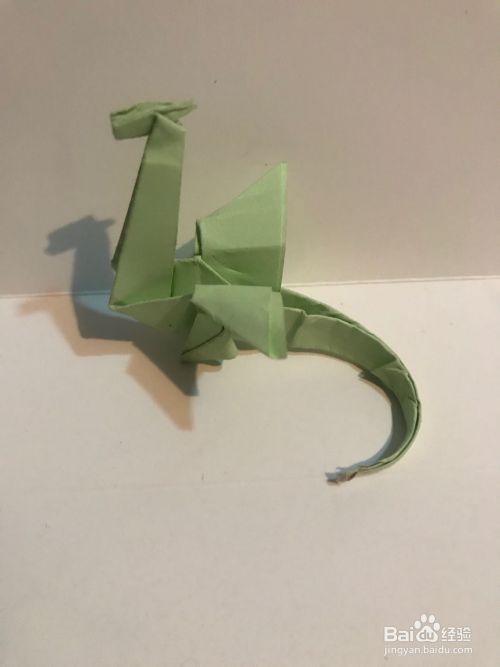 第九步 再好头部和翅膀之后之后 再用一支笔把翼龙的尾巴卷曲一下 然后再整理一下各个部位 一条酷酷的可爱的翼龙就折叠完成了