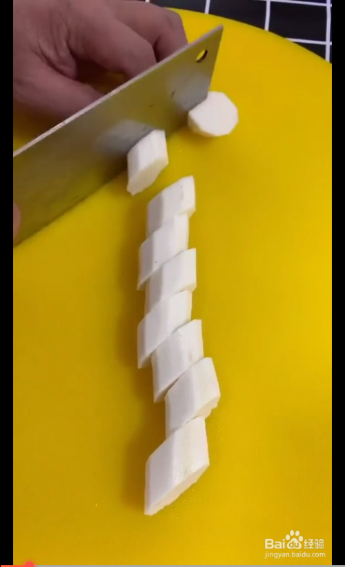 山药去皮切段,再切片