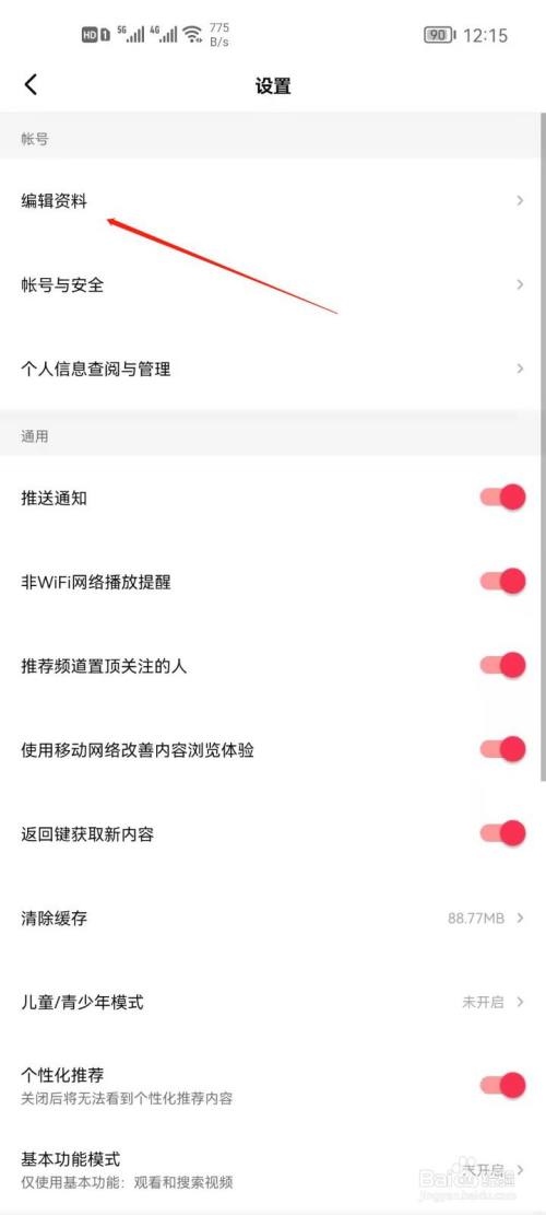 3、点击进入编辑资料