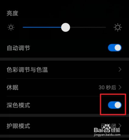 在通知栏内,点击深色模式的图标,液可以快速关闭