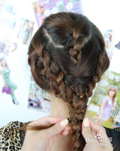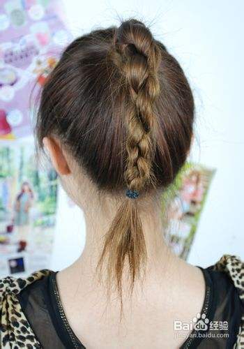 然后用下层的头发将这个发辫缠绕起来,这个发辫不用动,一直保持在中间就可以了。