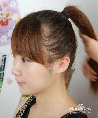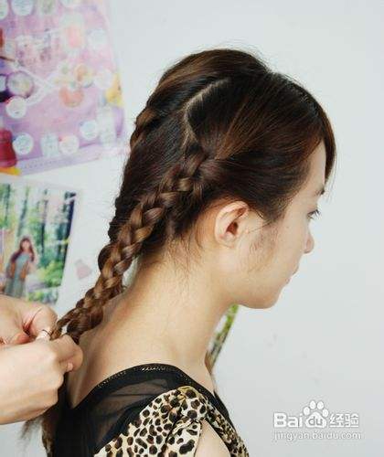 将头发分成三份,中间的那份头发再分成上下2份,上面一层从头顶编一个辫子下来,然后用小皮筋固定住。