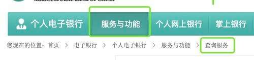 进入电子银行,接着进入个人电子银行,选择服务与功能,点击查询服务。