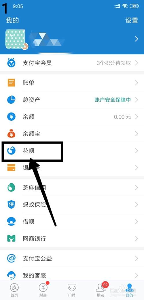 第一、点击打开支付宝我的页面中的“花呗”;