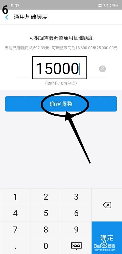 第六、设置一个额度,然后确定调整就可以解冻花呗,正常使用了。