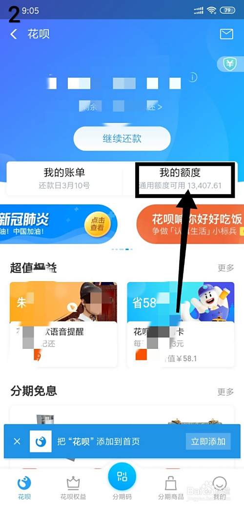 第二、在进入花呗之后点击打开“我的额度”;