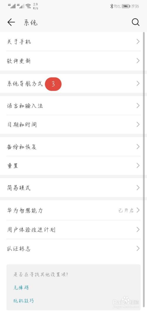 在设置中我们找到和设置导航方式有关的内容,一般在最下方的系统中,当然也可以使用搜索快速查找。
