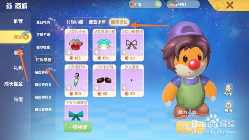 在打开的商城页面,点击左侧的服装,选择时尚摩登中的摩尔少女。
