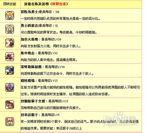 冒险岛勇士29勇士意志4加农火炮30集中炮击30诺特勒斯战舰30磁性船锚15双胞胎猴子支援15双幸运骰子5超级猴子魔法30极限燃烧弹30海盗精神30