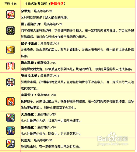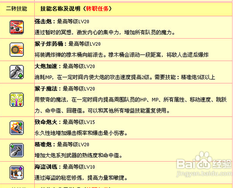 强击炮16猴子炸药桶20大炮加速20猴子魔法20致命炮火15精准炮20海盗训练10