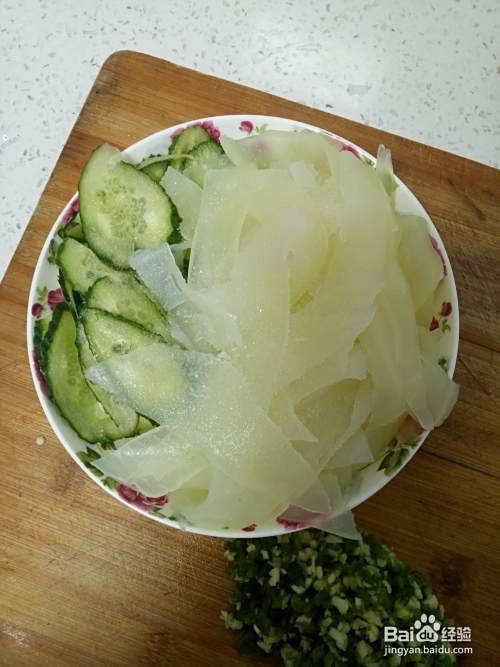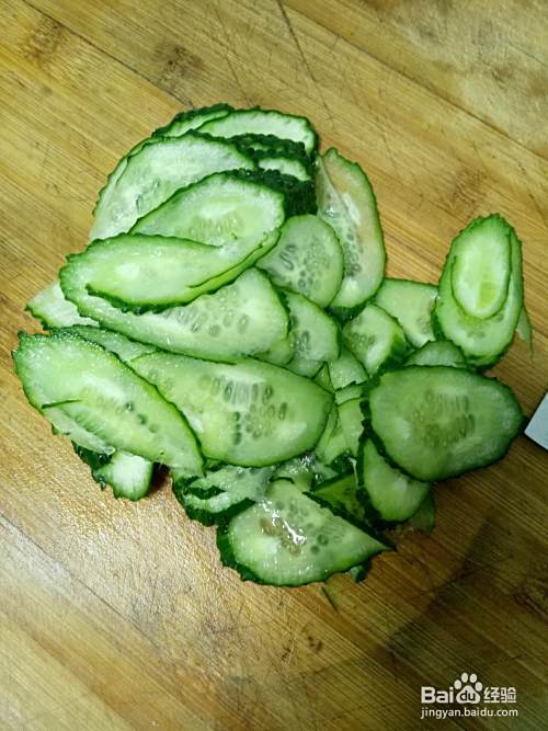 先把黄瓜和粉皮清洗干净,然后把黄瓜切片。