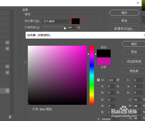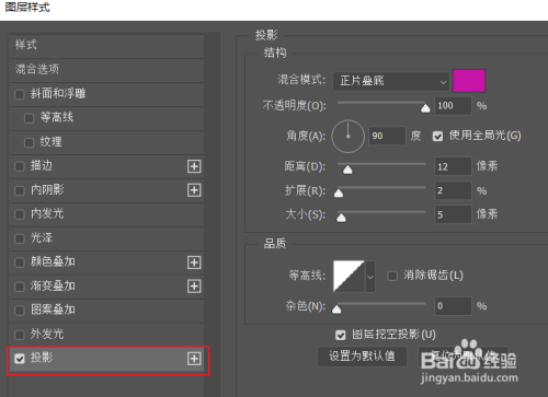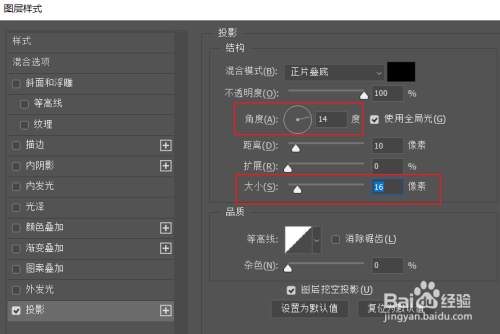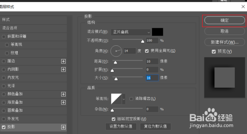 总结:右键选择混合选项并点击勾选投影,然后设置投影颜色为黑色,最后调整投影角度和阴影大小参数并点击确定