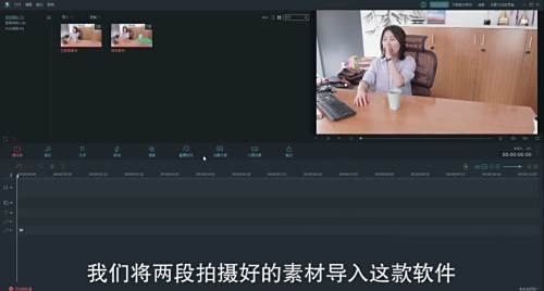 首先将两段拍摄好的素材导入软件。